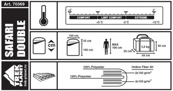 Двухместный спальный мешок Trek Planet Safari Double 70369 - Характеристики