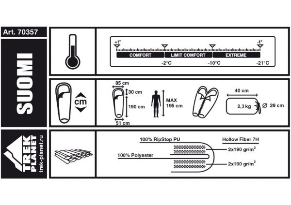 Спальный мешок Trek Planet Suomi 70342/70357 правый - Описание