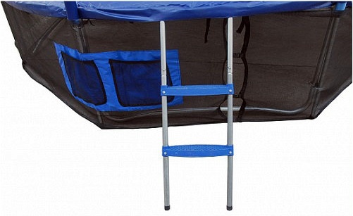 - Лестницы и сетки – с их помощью облегчается использование батута. Небольшая, но прочная лестница, изготовленная из стали, обеспечит безопасный выход и вход на прыжковое полотно. С помощью сетки будут исключены травмы и ушибы в процессе совершения прыжков.