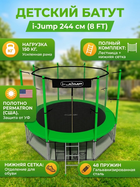 Батут с защитной сеткой i-Jump 8ft green - Характеристики