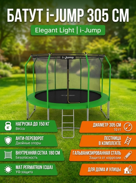 Батут с внутренней сеткой и лестницей I-Jump Elegant Light 10ft green - Характеристики