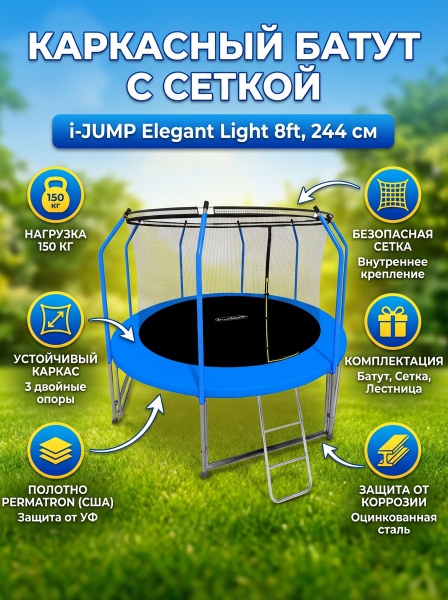 Батут с внутренней сеткой и лестницей I-Jump Elegant Light 8ft blue - Описание
