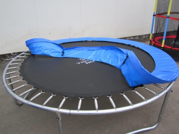 - Защитные чехлы – когда в батуте нет необходимости, они уберегут изделие от губительного воздействия влаги. На прыжковом полотне не будет оседать пыль и загрязнения, что облегчит дальнейшую эксплуатацию и бережный уход за приобретенным ранее батутом.