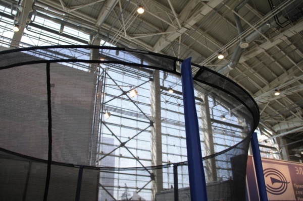 - Спортивные батуты – их размеры варьируются от 1,5 до 6 метров в диаметре. Основой выступает стальная рама и прочные W-образные ножки. Большое количество пружин обеспечивает идеальные условия для совершения сложных прыжков и подготовки к соревнованиям.