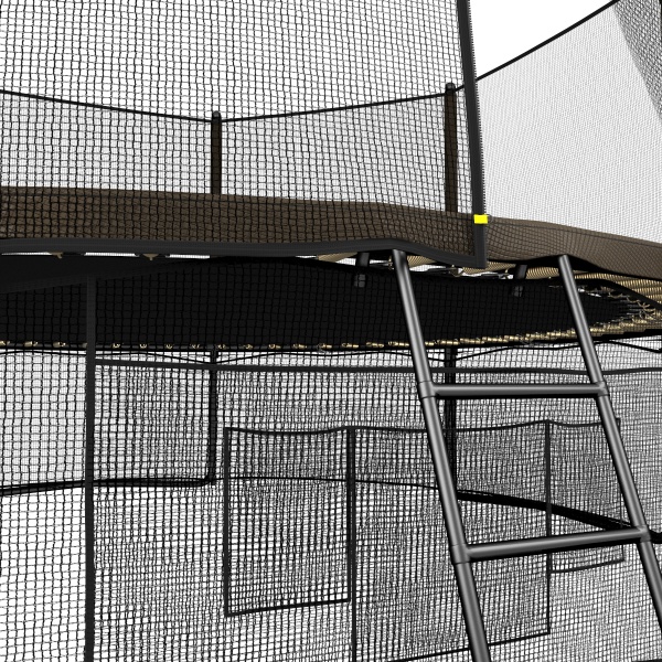 Помимо верхней защитной сетки, все батуты модельного ряда UNIX line оборудованы нижней защитной сеткой, которая препятствует проникновению под прыжковое полотно батута детей, животных, а так же попаданию посторонних предметов, и лестницей для удобства пользования.