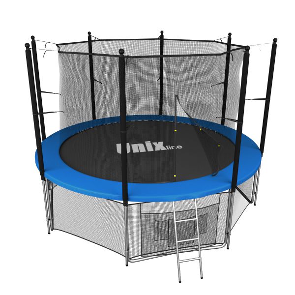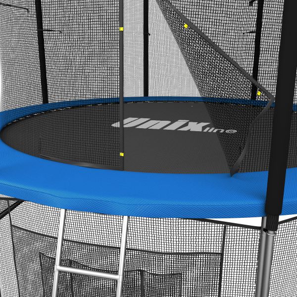 Помимо верхней защитной сетки, все батуты модельного ряда UNIX line оборудованы нижней защитной сеткой, которая препятствует проникновению под прыжковое полотно батута детей, животных, а так же попаданию посторонних предметов, и лестницей для удобства пользования.