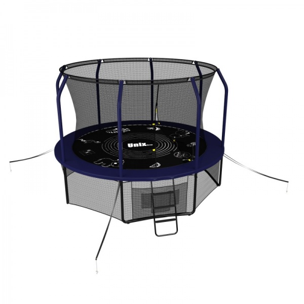 Помимо верхней защитной сетки, все батуты модельного ряда UNIX line оборудованы нижней защитной сеткой, которая препятствует проникновению под прыжковое полотно батута детей, животных, а так же попаданию посторонних предметов, и лестницей для удобства пользования.
