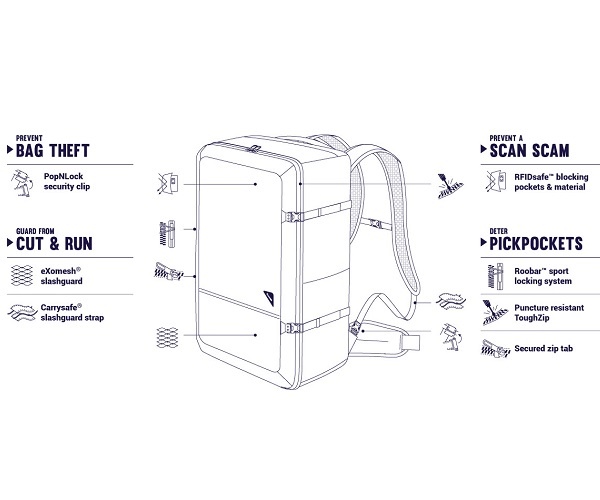 Рюкзак в ручную кладь антивор Pacsafe Vibe 40 серый камуфляж - Преимущества