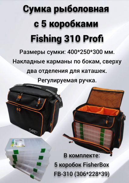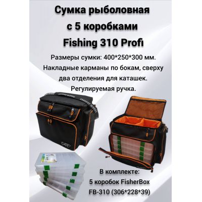 Артикул: Сумка рыболовная с 5 коробками Fishing 310 Профи,