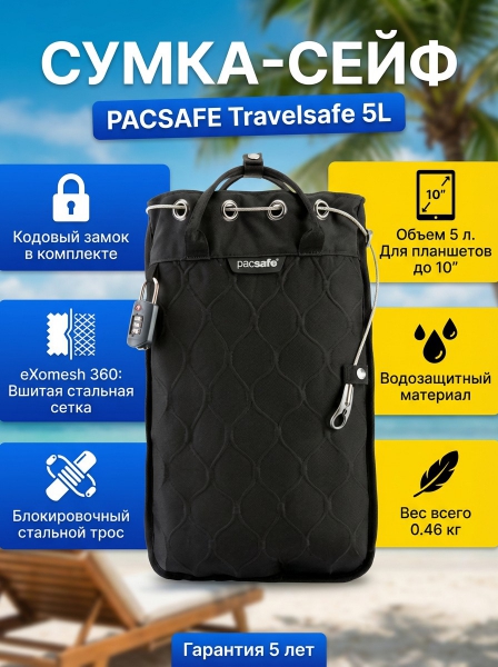 Сумка-сейф черная Pacsafe Travelsafe 5L GII - Описание