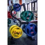 - Диски – они могут быть хромированные, обрезиненные, крашенные или заключенные в пластиковую оболочку. Блины с покрытием более бесшумные и безопасные в процессе использования. Форма изделий – круглая, но есть диски, имеющие шесть и более граней.