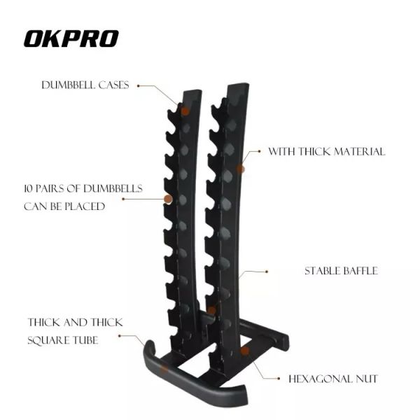 Стойка для гантелей вертикальная OKPRO на 10 пар гантелей от 1 до 10 кг - Описание