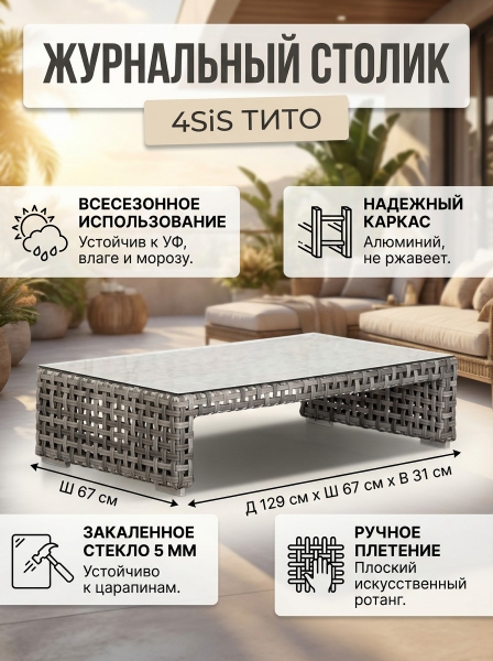 Купить стол для дачи и сада 4SIS "Тито" ротанг серый по эксклюзивной цене от официального дилера. Профессиональные консультации.