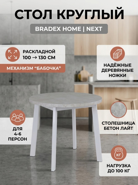 Стол круглый раскладной Bradex Home Next 100-130 см - Бренд
