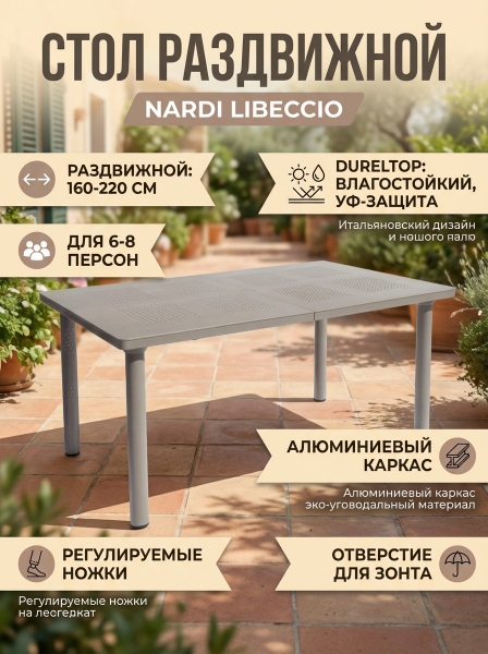 Стол пластиковый раздвижной Nardi Libeccio, тортора - Описание
