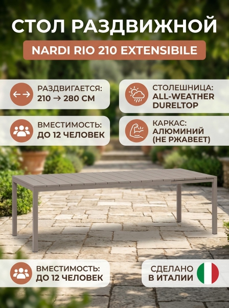 Купить стол для дачи и сада Nardi Rio 210 Extensibile по эксклюзивной цене от официального дилера. Профессиональные консультации.