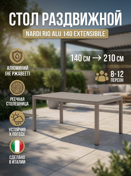 Купить стол для дачи и сада Nardi Rio Alu 140 Extensibile по эксклюзивной цене от официального дилера. Профессиональные консультации.