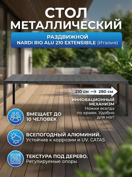 Стол металлический раздвижной Nardi Rio Alu 210 Extensibile - Отзывы