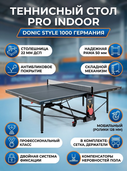 Теннисный стол DONIC INDOOR STYLE 1000 GRAY - Описание