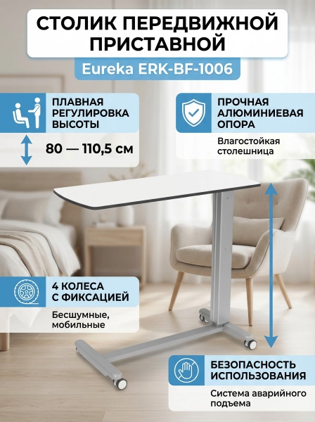 Столик передвижной приставной Eureka ERK-BF-1006, белый - Преимущества