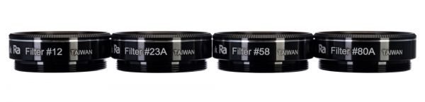 | Четыре фильтра в комплекте: | №23A (светло-красный), №58 (зеленый), №80A (голубой), №12 (желтый) |