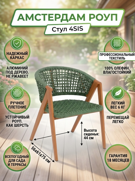 Стул 4SIS "Амстердам" роуп зеленый круглый - Бренд