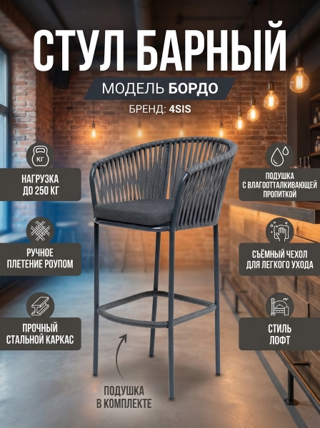 Стул барный 4SIS "Бордо" роуп серый, ткань темно-серая 027 - Отзывы
