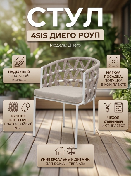 Стул 4SIS "Диего" роуп бежевый круглый, ткань бежевая 052 - Бренд