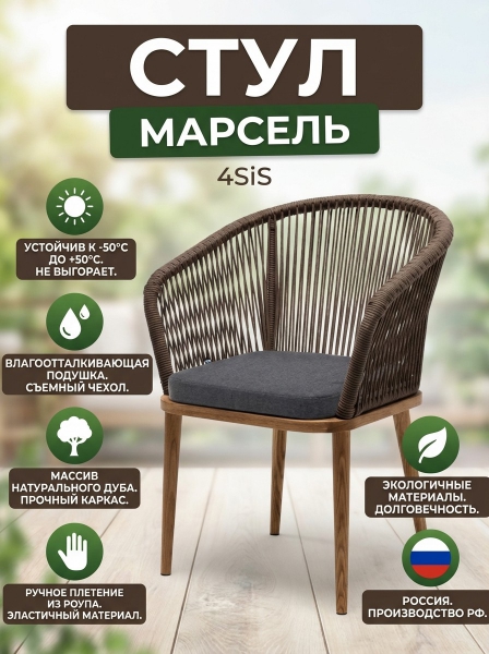 Стул 4SIS "Марсель" роуп темно-серый круглый, ткань темно-серая 027 - Бренд