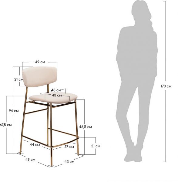 Стул полубарный BRADEX HOME Elle кремовый с золотыми ножками - Характеристики