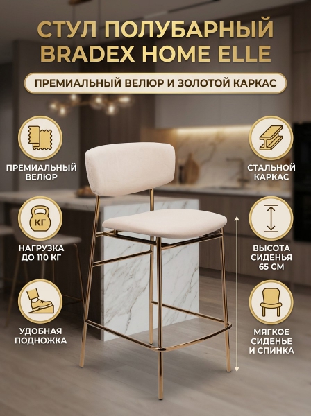Стул полубарный BRADEX HOME Elle кремовый с золотыми ножками - Бренд