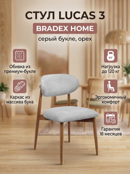 Стул BRADEX HOME Lucas 3 серый букле с ножками цвета орех - Бренд