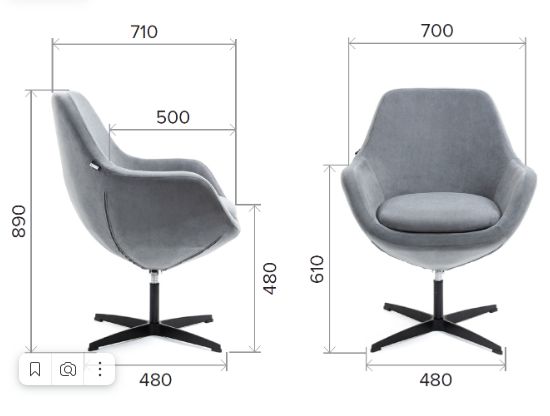 | Размер кресла (ДхШхВ): | 71 х 70 х 89 см |