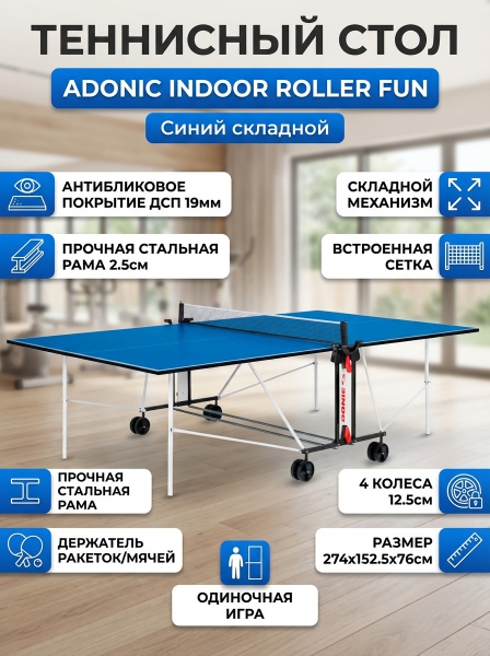 Теннисный стол Donic Indoor Roller Fun синий - Доставка