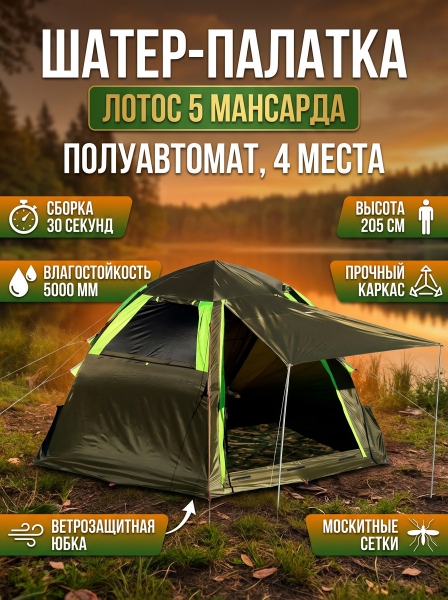 Кемпинговая палатка Лотос 5 Мансарда - Доставка
