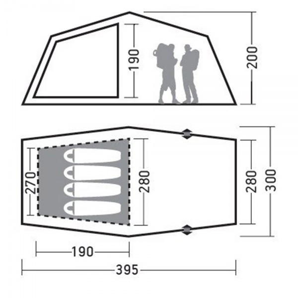 | Ширина внутренней палатки: | 270 см |