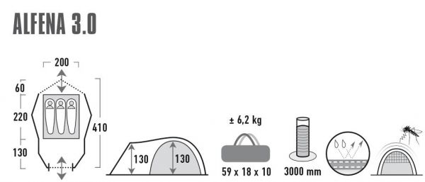 Кемпинговая палатка HIGH PEAK Alfena 3 nimbus grey - Характеристики