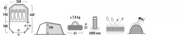 | Размеры внутренней палатки (ДхШхВ): | 250x240x190 см |