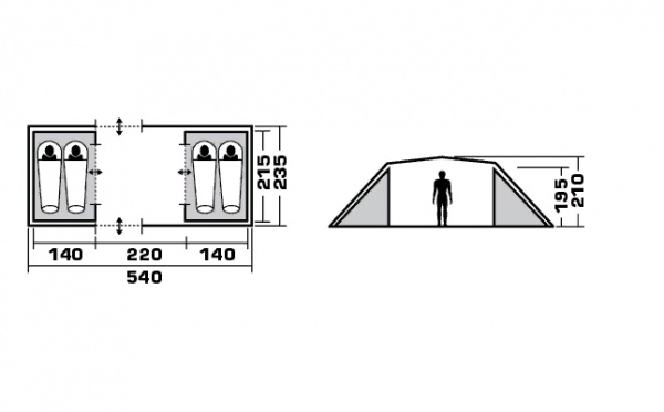 | Высота внешней палатки: | 195 см |