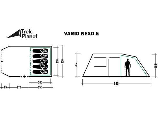| Размер внешней палатки (ДхШхВ): | 615 см x 330 см x 205 см |
