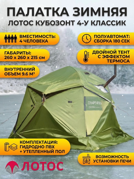 Палатка Лотос КубоЗонт 4-У Классик+Гидродно+Утепленный пол - Описание