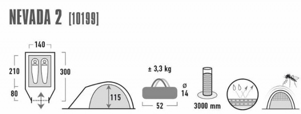 Двухслойная палатка с просторным тамбуром High Peak Nevada 2 - Характеристики