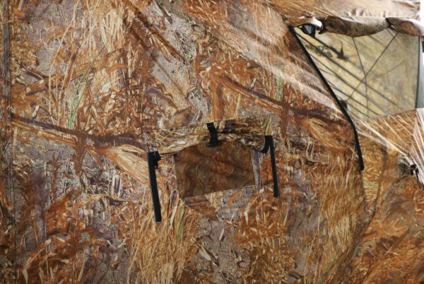 | Вентиляционные окна на стене и двери палатки для проветривания во время ночлега или дождя. | |