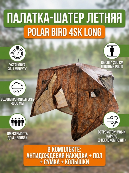 Палатка-шатер летняя Polar Bird 4SK Long (Камуфляж) - Описание
