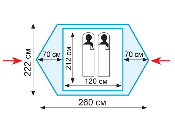 | Размеры внутренней палатки (ДхШхВ): | 212 x 120 x 100 см |