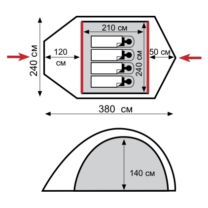 | Размер внутренний тент: | 210 x 240 x 140 см |
