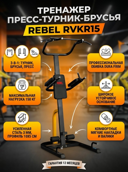 Тренажер пресс-турник-брусья Rebel RVKR15 - Бренд