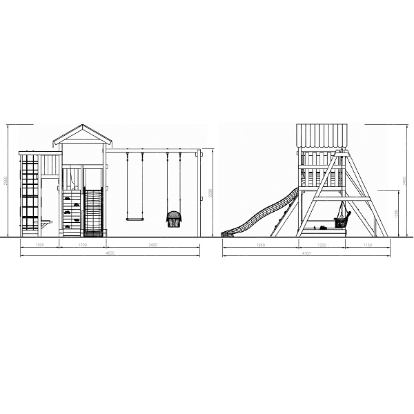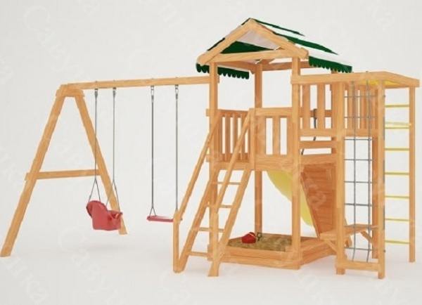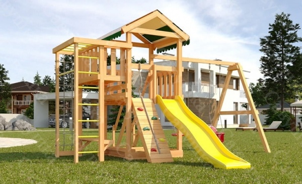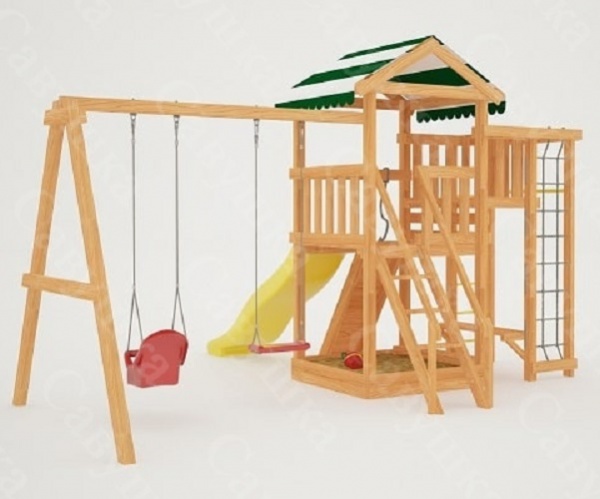 | В комплекте: | домик игровой деревянный, балкон, крыша тентовая, горка, качели-лодочка, качели, песочница, лавочка на песочницу, альпинистская стенка с пластиковыми выступами и канатом, игровой столик, лестница с деревянными ступенями и поручнями, сетка, шведская стенка, рукоход,турник, руководство по сборке. |