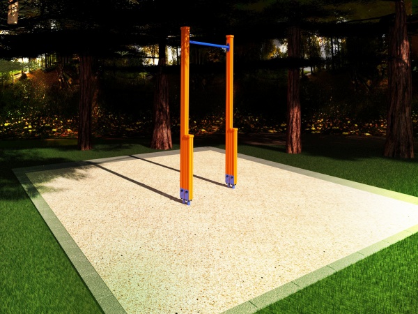 - Уличные – выполняются из металла со специальным антикоррозийным покрытием, которое обесславливает долговечность службы всей конструкции. Представляют собой две опоры с верхней перекладиной, а монтаж осуществляется с помощью бетонирования несущих частей.