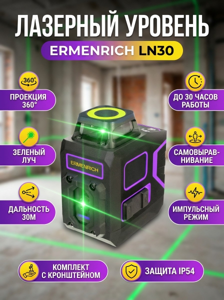 Лазерный уровень Ermenrich LN30 фиолетовый - Отзывы